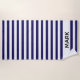 Ein auffälliges gestreiftes Strandtuch mit Marineband und weißem Streifen. Personalisieren Sie sich mit Ihrem Namen.
