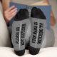 Kick dir die Füße hoch mit diesen lustigen Socken, die eine Nachricht am Boden haben. Personalisieren Sie es mit vier Zeilen benutzerdefiniertem Text!