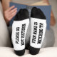 Kick dir die Füße hoch mit diesen lustigen Socken, die eine Nachricht am Boden haben. Personalisieren Sie es mit vier Zeilen benutzerdefiniertem Text!