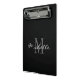 Personalisierte Mini-Clipboard mit elegantem Monogramm. Individuelles Weihnachts- oder Geburtstagsgeschenk für Lehrer, Mitarbeiter, Sporttrainer, Personaltrainer, Fitness-Instruktor, Freund, Mutter, Vater, Chef, Firmenangestellte, Büroangestellte, Friseur usw. Skripttypografie-Design mit Namen und Anfangsbuchstaben. Schwarz-Weiß- oder Sonderfarben. Doppelter Ausdruck Praktisch für Notizen, Rezepte, um Listen zu machen, Arbeitslisten, Hochzeitspläne, behaltend Sport Partitur und mehr.