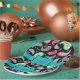 Werfen Sie ein trendiges und stilvolles Party mit diesen Einweg-Papier-Party-Tellern personalisiert mit Ihrem Monogramm-Initial und mit einem stilvollen Paisley-Kunstmuster. Mit einem Farbspritzer kann dieses Design mit dem Monogramm, den Initialen oder dem Namen personalisiert werden. Die kühnen Farben dieses angesagten Paisley-Designs sind mit einem schwarzen Hintergrund, einem türkisfarbenen aquamarinen oder aqua-blauen Streifen und einem Emblem für die persönliche Note versehen. Helle, frische, moderne Paisleys bilden ein wunderschönes künstlerisches Design, das inspirierende Worte von Liebe, Hoffnung, Glauben, Inspirier, Tschechisch, Be Happy, Dream, und Live im Hintergrund zwischen den Paisleys beinhaltet. Diese von Phyllis Dobbs entworfene Kollektion Mod Paisley verwendet die Farbtöne aquamarin, türkisblau, Limettengrün, Wein, Gelb, Fuchsien und Orange, um das traditionelle und beliebte Paisleymotiv zu genießen. Das Paisleymotiv ist zeitlos ansprechend, aber diese originelle Kunst ist zeitgenössisch und zugleich modern. Vollständig anpassbar für Personalisierung mit eigenen Worten, um Ihre eigene Nachricht hinzuzufügen.