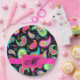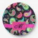 Diese Papierplatte personalisiert mit Ihrem Monogramm-Initial und mit einem modernen Paisley-Kunstmuster wird ein stilvolles und leicht verständliches Party machen. Fügen Sie einen Farbspritzer hinzu und personalisieren Sie ihn mit Ihrem Monogramm, Ihren Initialen oder Namen. Die kühnen Farben dieses angesagten Paisley-Designs zeichnen sich durch einen schwarzen Hintergrund mit einem heißen rosa Fuchsia-Streifen aus. Helle, frische, moderne Paisleys bilden ein wunderschönes künstlerisches Design, das inspirierende Worte von Liebe, Hoffnung, Glauben, Inspirier, Tschechisch, Be Happy, Dream, und Live im Hintergrund zwischen den Paisleys beinhaltet. Diese von Phyllis Dobbs entworfene Kollektion Mod Paisley verwendet die Farbtöne aquamarin, türkisblau, Limettengrün, Wein, Gelb, Fuchsien und Orange, um das traditionelle und beliebte Paisleymotiv zu genießen. Das Paisleymotiv ist zeitlos ansprechend, aber diese originelle Kunst ist zeitgenössisch und zugleich modern. Vollständig anpassbar für Personalisierung mit eigenen Worten, um Ihre eigene Nachricht hinzuzufügen.