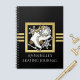Das Design ist mit einem Eis-Skate über einem Schneeflocken-Wappen mit schwarzem und Imitat goldenem Glitzer-Hintergrund ausgestattet. Dieses elegante Wintersportdesign dient als cooles, modernes und einzigartiges Notizbuch mit personalisiertem Text.