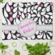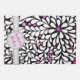 Blume und wirbelnde weiße Blätter auf fett schwarzem Hintergrund. Original ' digitale Malerei. Risse Kanten, scharfe Linien, weiße Punkte und wirbelnde Blätter. Rosa Farbe verblassen ombre Blume Center. Personalisieren Sie den Namen.