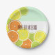 Dieses Design zeichnet sich durch ein Muster sommerlicher Zitrusfrüchte-Scheiben aus: Orange, Zitrone und Limon. Die originale Illustration mit personalisiertem Text macht moderne und einzigartige Teller aus Papier.