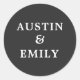 Personalisierte moderne Schwarz-Weiß-Hochzeit Runder Aufkleber