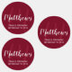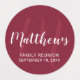 Personalisierte Monogram und Family Name Fevor Labels verfügen über Familiennamen im modernen, weißen Script Schriftart Stil und Monogramm im hellbordeauxroten modernen Script Schriftart Stil als Hintergrund mit Details in weißen Sans Serif Schriftart Stil auf burgundy roten Hintergrund. Ideal für Wiedersehen und alle besondere Anlässe.
