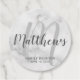 Personalisierte Monogramm- und Familienname-Fvor-Tags sind mit Familiennamen in grauem, modernem Script-Schriftart-Stil und Monogramm im hellgrauen, modernen Script-Schriftart-Stil ausgestattet. Das Jahr wird auf weißem Marmor im Stil eines grauen serifenlosen Schriftartes gehalten. Ideal für Wiedersehen-Liebhaber.