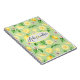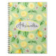 Individuelle Name Spiralheft mit hellen und fröhlichen Aquarellfarben bemalten Zitronen mit Blütenmuster auf grünem Hintergrund, ändern Sie einfach den Namen.