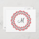 Personalisierte Monogramm-Blume Roter Ring Postkarte