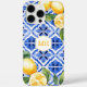 Personalisiertes Monogram Mediterranean Yellow Lemons iPhone Case mit hellgelben Aquarelllemonen und grünen Blätter auf einem klassisch blauen und weißen mediterranen Fliesenboden. Mit einem sauberen gelben Monogramm bringt es stilvolle Positano- und Amalfi-Küstenstreifen in Ihre Alltagssessentielle. Ein frischer, personalisierter Look für Sommer und Frühling. Machen Sie es mit einer einfachen Anpassung. Benötigen Sie eine maßgeschneiderte Bestellung? Schicken Sie uns einfach eine Nachricht, wir sind hier um zu helfen. Bitte beachten Sie, dass die Reaktionszeiten aufgrund der Zeitdifferenz leicht variieren können.