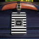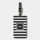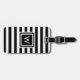 Das personalisierte, schwarz-weiß gestreifte Gepäckanhänger mit einem eleganten, schwarz-weißen quadratischen Anfangsmonogramm. Die Rückseite hat einen schwarzen Hintergrund mit klassischem weißem Text für Ihre Kontaktdaten. Sie können die erste Farbe individuell anpassen und die Farbe an eine Farbe Ihrer Wahl anpassen.