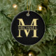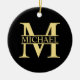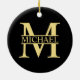 Personalisierte Monogramm und Name Schwarz und Gol Keramik Ornament