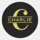Personalisierte Monogramm und Name Schwarz und Gol Runder Aufkleber