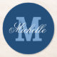 Personalisierte Monogramm-Untersetzer in Blau Runder Pappuntersetzer
