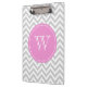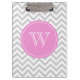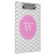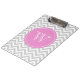 Personalisierte Monogramm-Zwischenablage mit grauem Zickzack Muster. Benutzerdefinierte Hintergrundfarbe mit rosa Beschriftung. Erstellen Sie Ihre eigene mit Ihrem Namen Anfangsbuchstaben. Elegantes Zickzack-Design. Weiße Zickzacklinien