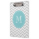 Personalisierte Monogramm-Zwischenablage mit grauem Zickzack Muster. Benutzerdefinierte Hintergrundfarbe mit türkisfarbenem Etikett. Erstellen Sie Ihre eigene mit Ihrem Namen Anfangsbuchstaben. Elegantes Zickzack-Design.