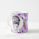 Coole personalisierte Kaffeetassen für Nageltechniken. Großartige Geschenke für Ihren Lieblings-Nageltechniker. Machen Sie Ihr Maniküre Lächeln mit diesem niedlichen unordentlichen Bun-Design mit lila und Nagellack-Flaschen.