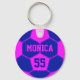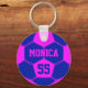 Personalisierte Name Nummer Pink Blue Soccer Ball Schlüsselanhänger