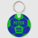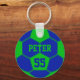Personalisierte Namensnummer Grüner Blauer Fußball Schlüsselanhänger
