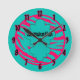 Personalisierte Namensuhr Hot Pink Aquamarin Zebra Runde Wanduhr