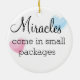 Diese reizende Keramikverzierungseigenschaft eine entzückende brünette NICU Krankenschwester ein Baby halten und mit den rosa und blauen Herzen betont. Die Rückseite der Verzierung liest "Wunder kommen in Päckchen. Macht ein reizendes Geschenk für jede mögliche Krankenschwester, oder ein reizendes danken Ihnen Geschenk.