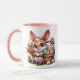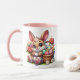 Niedlich Osterhase neben einem Korb voller gefärbter Ostereier Cartoon Kaninchen sitzend. Diese Tasse sagt Mama, aber Sie können personalisieren, um jeden Namen oder Familienmitglied zu sagen.