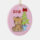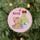 Personalisierte Niedliche Orange Tiger Katze und Weihnachtsbaum auf Rosa Hintergrund Keramik Ornament
