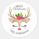 Ein niedliches Rentiergesicht schmückt diesen Aufkleber mit den Worten Frohe Weihnachten. Spaß beim Dekorieren von Weihnachtsgeschenken und Leckerei-Taschen für die Nachbarn. Personalisieren Sie es mit Ihrem Namen. Entworfen für Sie von BlackBerry Boulevard.