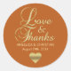 Personalisierte ORANGE Gold LIEBE & DANK Hochzeit Runder Aufkleber