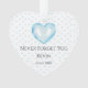 Ehre die Erinnerung an deinen wertvollen Jungen mit diesem wunderschönen, herzförmigen Ornament-Sake. Dieses gedankenvoll entworfene Werk ist perfekt für Eltern, die ihren Verlust trauern oder als bedeutendes Geschenk für Begräbnisgäste, um das Gedächtnis Ihres Kleinen für immer zu schätzen."