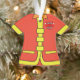 Personalisierte Feuerwehrmann-Feuerwehrmann-Weihnachtsfeiertags-Verzierung. Personifizieren Sie, indem Sie den Text auf der Rückseite der Verzierung zu allem ändern, das Sie wollen. Addieren Sie mehr Text oder löschen Sie einiges. Addieren Sie den anwesendes Jahr- oder Jahrestagsgeburtstag oder anderen besonderen Anlass.