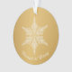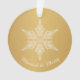 Verheiratet u. fröhlich - Herr u. Frau Wedding Foto Holiday Ornament -- Addieren Sie Ihre eigene Lieblingsfamilie, Kinder, oder Haustierbild auf zurück zu stellen ein einzigartiges personalisiertes Andenkenmemento her, um an Ihrem Baum für Jahre zu gekommen zu hängen oder senden den Freunden oder geliebten als Geschenk weit weg. Kann auch verwendet werden, um Spaß zu schaffen und denkwürdiges Geschenk etikettiert für die speziellen Leute auf Ihrer Listen… Mamma, Vati, Großeltern, Schwestern und Brüder, Rückseite etc. -- Elegante Vintage weiße mit Filigran geschmückte Schneeflocke auf noblem Goldhintergrund mit optionaler Gewohnheit kurvte Text.