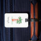 Dieses personalisierte Gepäckanhänger mit Palmen, Lichtern mit Zeichenketten mit stilvoller Schrifttyp, leicht anpassbar. Original Wasserfarbe © Michele Davies.