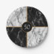 Personalisierter Geburtstag / Jubiläum Party Schwarz-weißer Karo Marmorpapier Teller MIGNED Design - Add Your Age - Jahr / oder Buchstaben / Logo / Zahl / Mehr mit Anpassungswerkzeug !