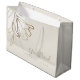 Elegante Elfenbein personalisiert große Papiertasche. Luxuriöses Branding-Design mit goldenen khaki Blume auf Elfenbeinboden abstrakt für Ihr kleines Schmuck- oder Beauty-Produkt-Geschäft. Bearbeiten Sie Text mit dem Zazzle-Bearbeitungswerkzeug! Geben Sie den Namen und das Geschäft ein. Besuchen Sie den Laden, um alle Kollektionen zu sehen. Planer, Notebook, Notizblock, Bindemittel, Kugelschreiber, Zwischenablage und vieles mehr sind verfügbar. Und natürlich sind auch Sanitisten und Masken im Shop!