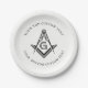 Benötigen Sie personalisierte mauerwerkliche Party-Teller und Dekorationen für Ihre jährliche Installation von Offizieren oder andere besondere Freimaurerveranstaltungen? Mit diesen einzigartigen Quadrat- und Kompass-Papier-Tellern, die Sie auf einer leicht zu bedienenden Vorlage personalisieren können, fügen Sie Ihrem individuellen maskonischen Tischdekor etwas Eleganz und Pop hinzu! Fügen Sie in Ihrem eigenen Text Veranstaltungsdetails hinzu... ändern Sie sogar die Farben, um Ihrem Thema zu entsprechen. Bitte beachten Sie, dass andere Quadrat- und Kompassfarben verfügbar sind (weiß, silber und gold), wenn Sie das Design noch weiter anpassen. Kategorie: Party-Dekorationsideen, kundenspezifische Tischdekorationen, Teller aus weißem und schwarzem Party, schwarz-weiß-masonische Tischdekorationen. Farben: Schwarz und Weiß.