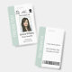 Stellen Sie sich mit diesem benutzerdefinierbaren pastellgrün grünen Personalausweis eine berufliche und leicht erkennbare Identität für Ihr Team zusammen. Dieses Design bietet ein sauberes und gut organisiertes Layout mit Platz für ein Foto, einen Namen, einen Titel, eine ID und ein Firmenlogo sowie einen subtilen vertikalen Akzent für die Bezeichnung von Abteilungen oder Teams und fördert so Klarheit und Markenkonsistenz. Seine einfache Ästhetik sorgt für eine schnelle visuelle Identifikation für mehr Sicherheit und ein einheitliches Arbeitsumfeld.