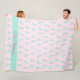 Gemütlich im Urlaubsstil mit dieser personalisierten, pastellfarbenen Weihnachtsdecke. Dieses festliche Fleecedecke mit seinem weichen rosa Hintergrund, der mit Weihnachtsbäumen aus Aqua geschmückt ist und von hellen rosa Sternen überragt wird, fügt dem traditionellen Weihnachtsdekor eine skurrile, moderne Drehung hinzu. Personalisieren Sie es mit Ihrem Familiennamen oder dem eigenen Text für einen einzigartigen Urlaubssinn. Diese große Decke aus ultraweicher Polyester-Fleece mit lebhaftem Vollfarbendruck eignet sich hervorragend zum Schnuppern auf der Couch, zum Schlafen oder zum Genken an Liebste. Langlebige Doppelnähte sorgen für lange Lebensdauer und das individuell anpassbare Design macht sie zu einem durchdachten Urlaubskenetz. Eine warme und fröhliche Feriendecke, die das perfekte Geschenk für Pastellliebhaber, Familien und alle, die einen nicht traditionellen Weihnachtsstil genießen.