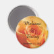 Nah aus einer pfirsichfarbenen Rose füllt den Hintergrund mit Ihren Namen und Datum.