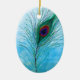 Handgezeichnete Pfauenfedern, aquamarin, türkis, lila und blau Weihnachtsschmuck. Auf der Rückseite können Sie den Text ändern, um zu sagen, was Sie gewollt haben.