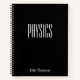 Ein niedliches, trendiges Notizbuch zum Physikunterricht oder zur Hausaufgaben mit einem einfachen, minimalistischen Cover in klassischem Schwarz und Platz für das Schulfach und Ihren Namen personalisiert zu sein.