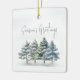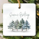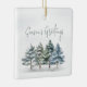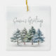 Dieses Design besticht durch ein elegantes Weihnachtsschmuck, ein modernes Pinselskript, klassische Vegetation, Winterkiefernbäume, einen Wald, botanisches Laub, ein grün-weißes Thema und eine einfache Kalligraphie im handgeschriebenen Stil.