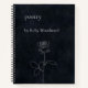 Ein schlichtes, elegantes zeichn eines Rosenbuds, das auf einem schwarzen Papieruntergrund geöffnet ist. Titel und Name können auf alles geändert werden, was Sie bevorzugen.