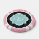Personalisierte Poker Chips für Vegas Hochzeitsfeier. Benutzerdefiniertes Casino Spieltoken Gastgeschenk. Ideal für einen Drink an der Bar und mehr. Rosa und aquamarin blau. Elegantes Vierbelfoliendesign mit Zickzack Zickzacklinien. Individuelle Name Initialen mit klassischem Schriftart.
