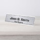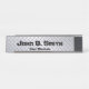 Dieser individuelle Name weist einen Hintergrund auf, der wie eine Diamantplatte aus hellem Stahl aussieht. Es umfasst auch zwei Textzeilen, die Sie personalisieren können: Fügen Sie Ihren Namen in einen kräftigen, kühnen Schriftart mit kleinen Schraubenmarken und Ihren Titel in einem Schriftart in einer kleineren Größe.