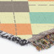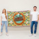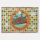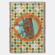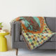 Die schöne Weihnachtsdecke mit niedlichem, roten Rentier auf dem Hintergrund von Braun-, Creme-, Aqua-, Orange- und Senfkohl-Raute, einem Massiv-Orange-Streifen und einem Aqua-blauen Zentrum mit weißen Polka-Punkten und Schneeflocken. Passen Sie diese Urlaubsdecke einfach mit Ihrem Namen an!