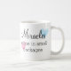 Genießen Sie Ihr tägliches warmes Getränk am Morgen, während Sie mit dieser personalisierten Kaffee-Tasse der NICU-Krankenschwester lächeln. Die Krankenschwester hat eine hübsche, rote Haar, die ein Baby hält und mit rosa und blauen Herzen Akzente setzt. Die andere Seite lautet "Wunder kommen in kleinen Paketen". Personalisieren Sie die Tasse auf einen beliebigen Namen. Kaffee oder Tee hat nie besser gekostet als in dieser erstaunlich bezaubernden und lustigen Tasse.