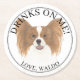 Personalisierte Red & White Papillon Dog Wedding Runder Pappuntersetzer