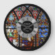 Die Wanduhr verfügt über ein buntes Glasfenster, wie es in einer Kirche, Kathedrale, Kapelle oder einem anderen Christlichen, katholischen Kultort zu sehen ist. Als solche würde es Anzug für jemanden von religiösem Glauben, Mitglied des Klerus oder jemand, der Buntglaskunst und historische Gebäude genießen. Fügen Sie Text, um diese Wanduhr zu personalisieren und sie für den Ruhestand, Jahrestag, Geburtstag oder anderen Anlass zu Gedenken.